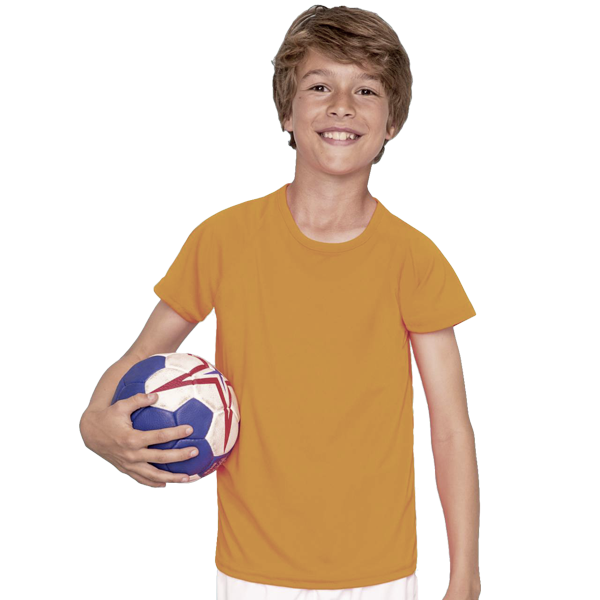 Dětské sportovní tričko s krátkým raglánovým rukávem, prodlouženým zadním dílem, s kulatým průkrčníkem a s bočními švy. Funkční materiál zajišťuje odvádění potu a udržování tělesné teploty. Tričko je vhodné na individuální sportovní trénink nebo na sportovní akci. Doporučujeme nosit tričko přímo na tělo, proto objednej raději o velikost menší.